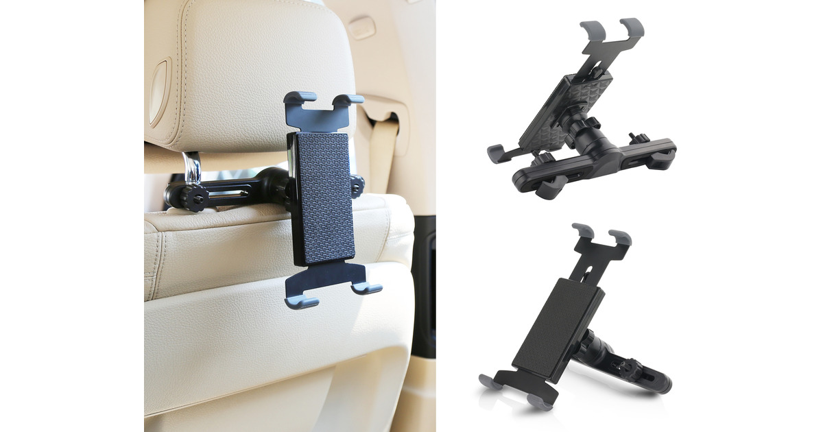 Tablet holder for the neck rest of your car seat. The holder fits for devices with screen size from 7 to 12". Easy mounting without the need of tools.
