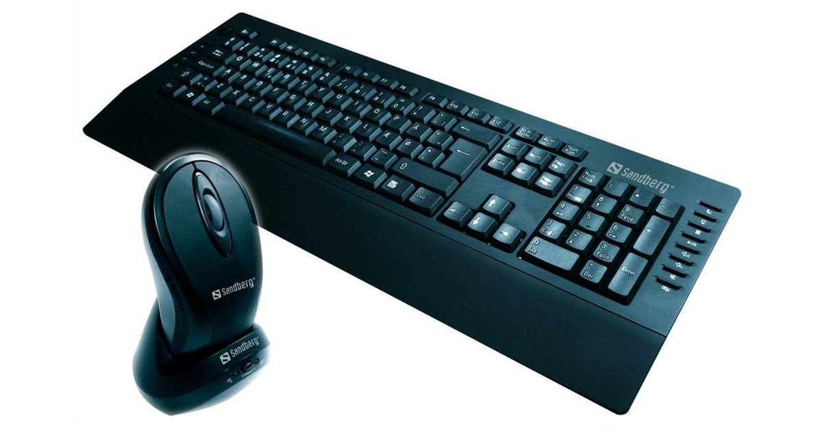 With the Sandberg Wireless Keyboard Set you get a beautifully designed, black keyboard set on your desktop without any cables to get in the way. The keyboard features accurate, low-noise keys, shortcuts to your applications and easy multimedia playback. The wireless optical mouse offers precise control, quick scrolling and two shortcut buttons. Both the mouse and keyboard feature a comfortable black rubber surface for a better grip. The mouse battery is charged automatically when you place the mouse in the cradle.